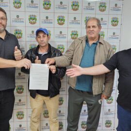 O prefeito Rafael Fumagalli, o vice-prefeito Rudinei Brizola, o presidente da Câmara de Vereadores, Aldinho Brizola, e o... leia mais