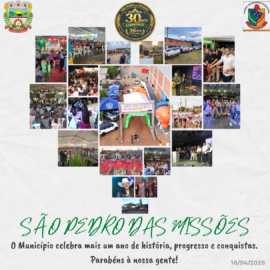 São Pedro das Missões, destacando o orgulho pela história, conquistas e o desenvolvimento do município.