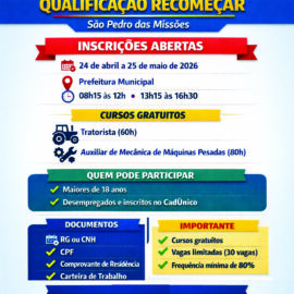 📢 PROGRAMA RS QUALIFICAÇÃO RECOMEÇAR A Prefeitura de São Pedro das Missões abriu o Processo Seletivo para ingresso... leia mais