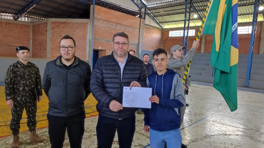 Na manhã desta sexta-feira, 1º de agosto, aconteceu em Cerro Grande a solenidade oficial de juramento à bandeira e a entrega dos certificados de dispensa de incorporação a jovens do sexo masculino nascidos em 2007, pertencentes aos municípios de Cerro Grande, Lajeado do Bugre e São Pedro das Missões.