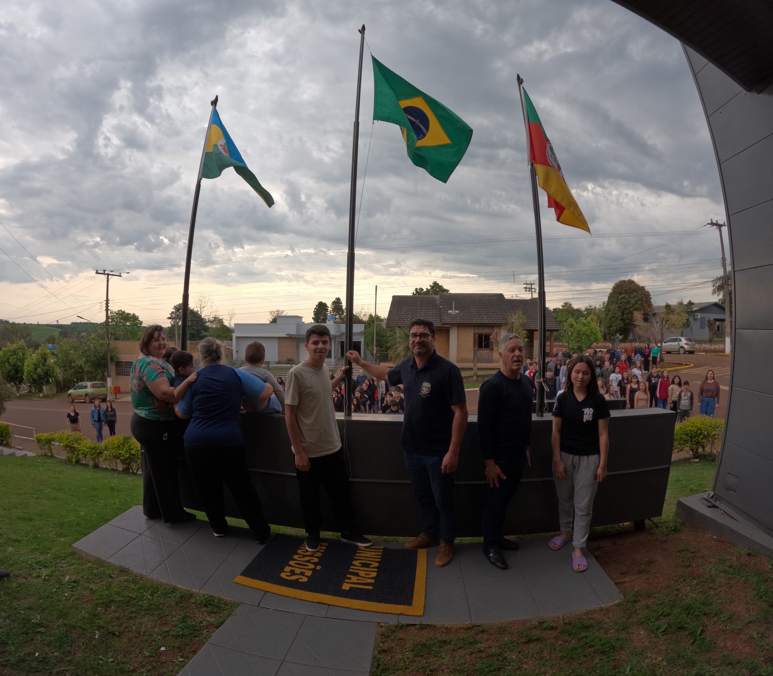 Ao longo dessa semana, a Secretaria de Educação do município promoveu momentos cívicos todos os dias nas três escolas municipais. Com o acompanhamento dos professores, uma turma de alunos realizava o hasteamento das bandeiras pela manhã, enquanto outra turma fazia o arriamento no final da tarde.
