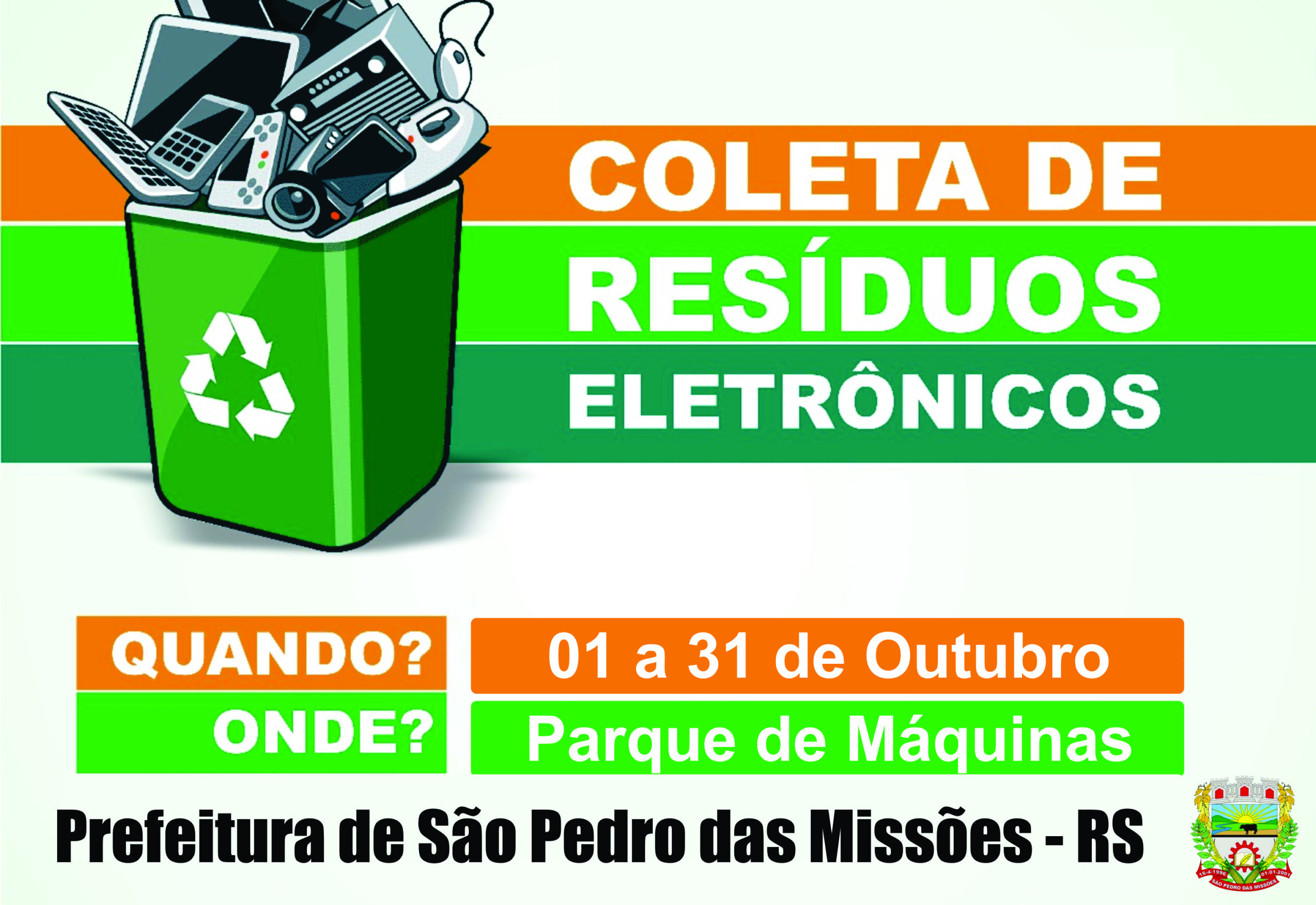 Para ajudar a proteger o meio ambiente e garantir que todo material eletrônico usado seja descartado de forma correta, a prefeitura de São Pedro da Missões, por meio do Departamento do Meio Ambiente, está realizando uma campanha de coleta de lixo eletrônico. Essa ação acontece de 1º a 31 de outubro. Os materiais podem ser levados ao parque de máquinas municipal.