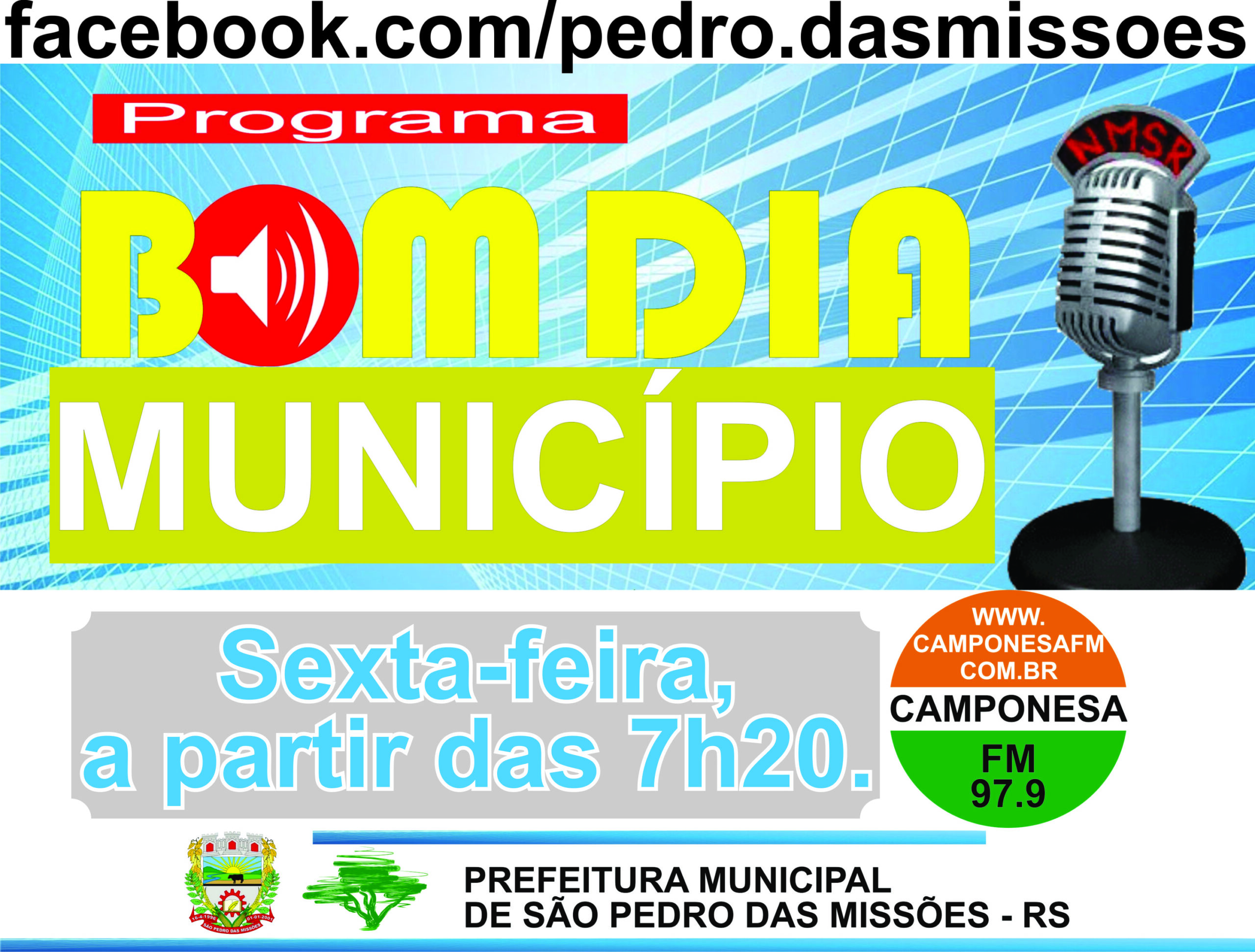 Na sexta-feira, dia 07 de novembro, foi ao ar a 37º edição do programa semanal “Bom dia Município”. O informativo é promovido pela prefeitura de São Pedro das Missões.