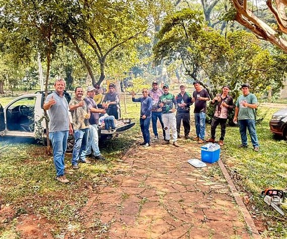 Neste sábado, 21 de fevereiro, a equipe da Secretaria de Obras e da Secretaria de Agricultura de São Pedro das Missões esteve no município de Palmeira das Missões prestando apoio nos trabalhos de limpeza da praça localizada nas proximidades do hospital.