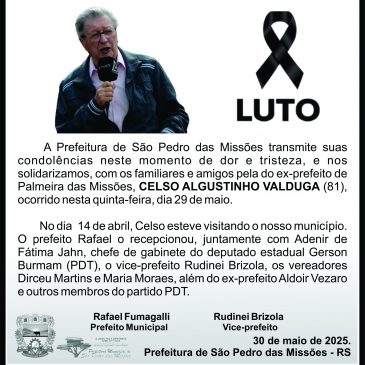 Na manhã dessa quinta-feira (29), foi informado pela Funerária São João que o ex-prefeito de Palmeira das Missões, Celso Augustinho … leia mais